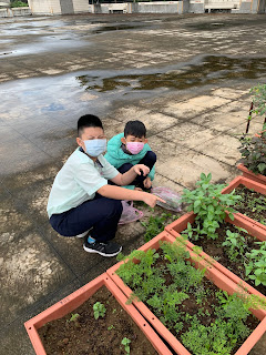 今天504的九層塔收成了,因為疫情,不方便在教室料理,就讓孩子們輪流帶回家,與家人分享。